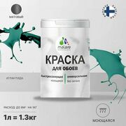 Краска Malare для стен и обоев, потолка и минеральных поверхностей, быстросохнущая моющаяся без запаха матовая, атлантида, (1л - 1.3кг)
