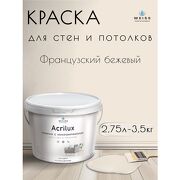 WEISS Краска интерьерная, для стен и потолков, моющаяся, матовая, 2.75л, французкий бежевый