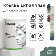 Краска для стен моющаяся: Глубина океана (зеленая) 1,5 кг. / BIsmo Interior: интерьерная, без запаха, быстросохнущая, матовая, акриловая, водоэмульсионная (С)