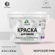 Краска Malare для стен и обоев, потолка и минеральных поверхностей, быстросохнущая моющаяся без запаха матовая, морской риф, (2.7л - 3.9кг)