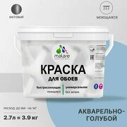 Краска Malare для стен и обоев, потолка и минеральных поверхностей, быстросохнущая моющаяся без запаха матовая, акварельно-голубой, (2.7л - 3,9кг)