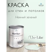 1 119 руб. 1 548 руб. В магазин WEISS Краска интерьерная, для стен и потолков, моющаяся, матовая, 1.1л, нежный зеленый