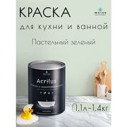 1 150 руб. 2 000 руб. В магазин WEISS Краска акриловая, моющаяся для стен и влажных помещений, кухни и ванной комнаты 1.1л DEC784 Пастельный зеленый