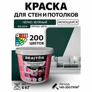 Краска ВД интерьерная BRAITON Премиум Моющаяся 6 кг. Цвет Чёрно-зелёный RAL 6012 акриловая, быстросохнущая, для наружных и внутренних работ, для стен и потолков, матовое покрытие