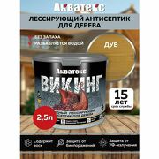 5 144 руб. 6 687 руб. В магазин Антисептик для дерева Акватекс Викинг 65084, лессирующий, полуматовый, 2,5 л, дуб