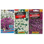 Чистый Мир Семена цветов "Чудесный ковёр" (Обриета Гигантский водопад каскадная, Ясколка Серебряный ковер, Арабис Волшебный ковер)