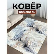 Калинка Ковер на пол прямоугольный, в гостиную, спальню, детскую, 046, Виктория, бежево-синий, 1*2 м