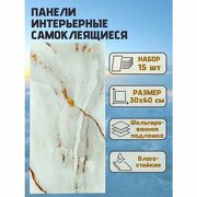 1 500 руб. 2 500 руб. В магазин Диньян Самоклеящаяся ПВХ плитка 60х30 см 15 шт в упаковке, водостойкая "Белый мрамор с золотыми акцентами". Легко наклеивается.