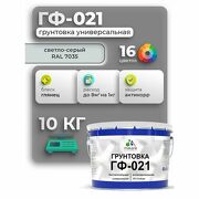 9 106 руб. 13 183 руб. В магазин Malare Грунтовка ГФ-021 универсальная для металла, по дереву, для минеральных поверхностей, быстросохнущая, RAL 7035, светло-серый, глянцевая, 10 кг