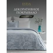Estia Покрывало на диван, на кровать Евро-макси "Примавера" бархат, 240x260, серо-голубое