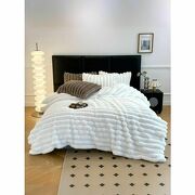 Покрывало на кровать 220х240, искусственный мех, Mency, полосатое, белое
