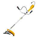 Двигатель: электрический, тип триммера: переносной, мощность электродвигателя: 1400 Вт, режущий элемент триммера: леска и нож, ширина скашивания: 42 см, конструкция штанги: прямая, плечевой ремень, количество колес: нет