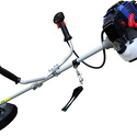 Двигатель: бензиновый, Мощность ДВС: 1.40 л.с., количество тактов двигателя: двухтактный, режущий элемент триммера: леска и нож, ширина скашивания: 42 см, конструкция штанги: прямая, плечевой ремень, количество колес: нет