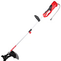 Двигатель: электрический, тип триммера: переносной, мощность электродвигателя: 1400 Вт, режущий элемент триммера: леска и нож, ширина скашивания: 38 см, конструкция штанги: прямая, количество колес: нет