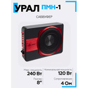 Производитель: УРАЛ Модель: ПМН-1 - корпусной активный сабвуфер - 240 Вт - 20–150 Гц Описание