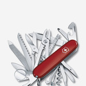 Функции и возможностиконсервный нож, нож для чистки рыбы, открывалка для бутылок, штопор, дополнительное лезвие, крестовая отвёртка, шлицевая отвёртка, ножницы, пилка / по дереву, по металлу /, плоскогубцы, кусачки, стриппер, напильник, пинцет, шило-швайка, зубочистка, пилка для ногтей, крюк, линейка, стамеска, лупа / 5х /, игла (булавка), шариковая ручка