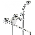 Покрытие - Хром, Встраиваемый - Нет, Назначение - Для ванны и душа, Присоединительный размер - 1\2", Поворотный излив - Да, Материал корпуса - Латунь, Форма излива - Традиционная, Количество монтажных отверстий - 2, Донный клапан - Нет, Тип - Двухзахватный, S-образные эксцентрики - Есть, Тип подводки - Жесткая, Термостат - Нет, Система быстрого монтажа - Да, Аэратор - Есть, Глубина - 33, Цвет - Серебристый, Высота - 12.8, Комплектация - Смеситель, шланг, лейка, фиксируемый держатель лейки,набор креплений, инструкция, паспорт, гарантийный талон, Длина излива - 250, Ширина - 17.3