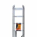 Конструкция: трансформер, телескопическая. Максимальная высота конструкции: 588 см. Длина в сложенном виде: 253 см. Максимальная нагрузка: 150 кг. Число секций: 3. Число ступеней: 27. Складной механизм: есть. Вес: 10.9 кг. Материал: алюминий. Антискользящие покрытие: есть. Тип: лестница.