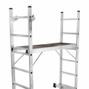 Лестница-помост «ВИХРЬ» ЛПА 3-У — универсальный трансформер, который можно собрать в виде подмостей или использовать как обычную приставную лестницу или двухсекционную стремянку. Модель состоит из двух секций, связующих перекладин и настила и способна принимать разные положения.