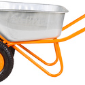 Тачка садово-строительная Вихрь Т 110-2 отлично подходит для транспортировки мелких, крупных и сыпучих грузов до 200 кг. Перевозка земли, стройматериалов, удобрений - это малая часть из того, чем может служить Вихрь Т 110-2. Объем кузова составляет 110 литров. Конструкция рамы обеспечивает крепкую сцепку с кузовом, не давая ему прогибаться при использовании. Два больших колеса диаметром 36 см имеют в своей конструкции подшипники, увеличивающие устойчивость и проходимость при использовании.