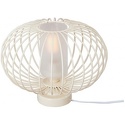 Настольная лампа декоративная стиля лофт для гостиной, кабинета или спальни имеет размеры 300x210 мм. Арматура светильника окрашена в белый цвет. Лампы в комплекте - отсутствуют. В светильнике применяются лампы накаливания или светодиодная LED-лампа. Цвет плафонов - белый, с матовой поверхностью. Материал плафонов - текстиль. Класс электробезопасности - II, степень пылевлагозащиты (IP) - 20. Максимальная мощность лампы (Вт) - 60. Светильник размещается на столе.