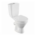 Тип: унитаз-компакт, напольный • Чаша: воронкообразная, полукруглая • Слив: косой • Подвод: нижний • Материал: санфарфор