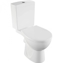Тип: унитаз-компакт, напольный • Чаша: воронкообразная, полукруглая • Слив: горизонтальный • Подвод: нижний • Материал: санфарфор