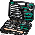 КомплектацияГоловка торцевая 1/4": 8, 9, 10, 11, 12, 13 ммГоловка торцевая 1/2": 10, 12, 13, 14, 15, 17, 19, 22, 24, 27 мм;Свечная головка 1/2": 16, 21 мм;Насадка 1/4" TORX: T10, T15, T20, T25, T27, T30, T40;Насадка 1/4" PH: PH1, PH2, PH3;Насадка 1/4" SL: SL3, SL4, SL5, SL6;Переходник (держатель для бит) 1/4"х1/4"(HEX);Вороток-отвертка 1/4" 150 мм;Трещотка 1/2";Удлинитель 1/2" 125 мм;Кардан 1/2";Ключ комбинированный: 10, 12, 13, 14, 15, 17 мм;Ключ шестигранный Г-обр.: 1.5, 2, 3, 4 мм;Отвертки: PH2x38, PH2x100, PZ2х200; SL6x38, SL6x100;Плоскогубцы 160 мм;Клещи переставные 250 мм;Молоток с деревянной рукояткой 300 г;Кейс
