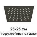 Характеристики Душевая насадка 250 x 250 мм, 112 форсунок, нержавеющая сталь Материалы Нержавеющая сталь Покрытие PVD-покрытие "оружейная сталь"