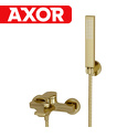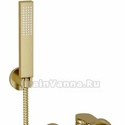 Керамический картридж 35мм, Sedal (Испания) Встроенный пластиковый аэратор Neoperl HONEYCOMB (Германия) для равномерного распределения струи Керамический поворотный переключатель Входит в комплект Лейка 1-функциональная с системой защиты от известковых отложений Шланг металлический 1500 мм, подключение к лейке Фиксированное настенное крепление для лейки Набор для монтажа Материалы Латунь, ABS-пластик, PVD-покрытие "матовое золото"