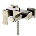 Назначение: ванна+душ • Конструкция: однорычажный • Монтаж: вертикальный • Клапан: керамический • Материал: латунь, покрытие - бронза • Подводка: жесткая • Монтажные отверстия: 2 отверстия • Форма излива: традиционная • Душевая лейка в комплекте: есть • Держатель для душевой лейки: настенный держатель • Аэратор: есть