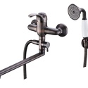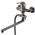 Назначение: универсальный • Конструкция: однорычажный • Монтаж: вертикальный • Клапан: керамический • Материал: латунь, покрытие - бронза • Подводка: жесткая • Монтажные отверстия: 2 отверстия • Душевая лейка в комплекте: есть • Держатель для душевой лейки: настенный держатель • Аэратор: есть