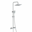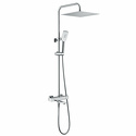 Характеристики: Душевой комплект с насадкой «Ливневый дождь» Входит в комплект: Душевая насадка 300х300 мм, 196 форсунок, нержавеющая сталь Стойка для душа, Ø 22 мм регулируемая по высоте Лейка 3-функциональная с системой защиты от известковых отложений Шланг ПВХ 1500 мм, подключение к лейке Термостатический смеситель Термостатический картридж Vernet (Франция) Встроенный пластиковый аэратор Neoperl HONEYCOMB (Германия) с регулируемым углом наклона струи Обратный клапан Neoperl (Германия)