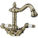 Назначение: для биде • Конструкция: с раздельными клапанами • Монтаж: горизонтальный • Клапан: керамический • Материал: латунь, покрытие - двухцветный • Монтажные отверстия: 3 отверстия • Форма излива: традиционная • Душевая лейка в комплекте: нет • Донный клапан в комплекте: есть