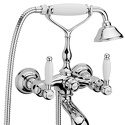 Назначение: ванна+душ • Конструкция: с раздельными клапанами • Монтаж: вертикальный • Клапан: керамический • Материал: латунь, покрытие - бронза • Подводка: жесткая • Монтажные отверстия: 2 отверстия • Форма излива: традиционная • Душевая лейка в комплекте: есть • Держатель для душевой лейки: на смесителе • Эксцентрики в комплекте: есть • Донный клапан в комплекте: есть