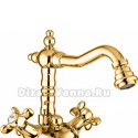 Назначение: для биде • Конструкция: с раздельными клапанами • Монтаж: горизонтальный • Клапан: керамический • Материал: латунь, покрытие - золото • Монтажные отверстия: 1 отверстие • Форма излива: традиционная • Душевая лейка в комплекте: нет • Донный клапан в комплекте: есть