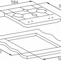 Поверхность: варочная панель • Тип поверхности: газовая • Рабочая поверхность: закаленное стекло • Число конфорок: 4 • Установка: независимая • Газовые конфорки: всего - 4 (1 конфорка "Тройная корона") • Газ-контроль конфорок: есть • Тип управления: механическое • Переключатели: поворотные • Электроподжиг: есть, автоматический • Размеры: 610x525x56 мм • Размер ниши для встраивания: 555x475 мм