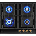 газовая на 4 конфорки • закаленное стекло • мощность: 8500 Вт • автоматический электроподжиг • газ-контроль • решетки: чугун • независимая установка • размеры (ШхГ): 60x51 см