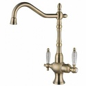 Назначение: кухонный • Конструкция: однорычажный • Монтаж: горизонтальный • Материал: покрытие - бронза • Монтажные отверстия: 1 отверстие • Форма излива: традиционная • Душевая лейка в комплекте: нет • Донный клапан в комплекте: есть