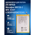 Аккумулятор (батарея) Li3823T43P3H715345 для сотового телефона ZTE Grand S Flex и WiFi роутера ZTE MF910, MF920, Мегафон MR150-2, MR150-5. Li-polymer, 2300mAh, 3.8V, цвет черный .
