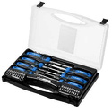 КомплектацияОтвертки мм, SLOT: SL3, SL5, SL6Отвертка Phillips: PH0, PH1, PH2Отвертка-битодержатель: 1Биты, SLOT: SL4, SL5, SL6Биты, Phillips: PH0, PH1, PH2, PH3Биты, Pozidrive: PZ1, PZ2, PZ3Биты, TX: T8,T9,T10, T15, T20, T25Биты, HEX: 3, 4, 5, 6