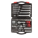 КомплектацияГоловки торцовые 1/2″ - (14, 15, 16, 17, 18, 19, 20, 22, 24, 27, 30, 32 мм) - 12 шт.Головки торцовые 1/4″ - (4, 4.5, 5, 5.5, 6, 7, 8, 9, 10, 11, 12, 13, 14 мм) - 13 шт.Головки торцовые свечные 1/2″ - (16, 21 мм) - 2 шт.Трещотки с быстрым сбросом 72 зубца - (1/2″, 1/4″) - 2 шт.Шарнир карданный - (1/2″, 1/4″) - 2 шт.Удлинители 1/2″ - (125, 250 мм) - 2 шт.Удлинители 1/4″ - (50, 100 мм) - 2 шт.Удлинитель гибкий 1/4″ (150 мм) - 1 шт.Адаптер трехпозиционный 1/2″M x 3/8″F - 1 шт.Вороток Т-образный - (1/4″ 1/2″) - 2 шт.Вороток-отвертка 1/4″ - 1 шт.Биты-головки 1/4″ - (PH1, PH2, PZ1, PZ2, SL4, SL5.5, SL7, T8, T10, T15, T20, T25, T30, H3, H4, H5, H6) - 17 шт.Адаптер 1/2″F x 5/16″HEX - 1 шт.Биты 5/16″ х 30 мм - (T40, T45, T50, T55, SL8, SL10, SL12, H8, H10, H12, H14, PZ3, PZ4, PH3, PH4) - 15 шт.Ключи комбинированные - (8, 10, 11, 12, 13, 14, 17, 19, 22 мм) - 9 шт.Пластиковый кейс - 1 шт.