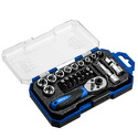 КомплектацияГоловки торцовые (1/4", 4, 5, 6, 7, 8, 9, 10, 11, 12, 13 мм) - 10 шт.Трещотка для бит и головок (1/4") - 1 шт.Шарнир карданный (1/4") - 1 шт.Удлинитель (1/4", 50 мм) - 1 шт.Биты (1/4", SL5, PH1, PH2, PH3) - 4 шт.Биты (HEX, H3, H4, H5, H6) - 4 шт.Биты (TORX, T10, T15, T20, T25, T30, T40) - 6 шт.