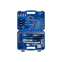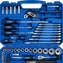 КомплектацияГоловки торцовые 1/2″ - (10, 11, 12, 13, 14, 15, 17, 19, 22, 24, 27, 30, 32 мм) - 13 шт.Головки торцовые 1/4″ - (4, 5, 6, 7, 8, 9, 10, 11, 12, 13 мм) - 10 шт.Головки торцовые удлиненные 1/4″ - (5, 6, 7, 8, 9 мм) - 5 шт.Головки торцовые свечные с резиновой вставкой 1/2″ - (16, 21 мм) - 2 шт.Шарнир карданный 1/2″, 1/4″ - 2 шт.Удлинитель для торцовых головок 1/2″ - (125, 250 мм) - 2 шт.Адаптер трехпозиционный 3/8″F x 1/2″M - 1 шт.Удлинитель 1/4″ - (75 мм) - 1 шт.Вороток-отвертка 1/4″ - (150 мм) - 1 шт.Переходник для бит 1/4″SQ х 1/4″F - 1 шт.Биты 1/4″ х 25 мм - (T10, T15, T20, T25, T27, T30, T40, PH1, PH2, PH3, SL3, SL4, SL5, SL6) - 14 шт.Ключи комбинированные - (10, 11, 12, 13, 14, 15, 17, 19 мм) - 8 шт.Плоскогубцы 175 мм - 1 шт.Клещи переставные - 1 шт.Отвертки - SL6 x 100, SL6.5 x 38, PH2 x 100, PH2 x 38, PH3 x 200 мм) - 5 шт.Молоток 300 г - 1 шт.Имбусовые ключи - (H1.5, H2 H3, H5, H6, H7) - 6 шт.